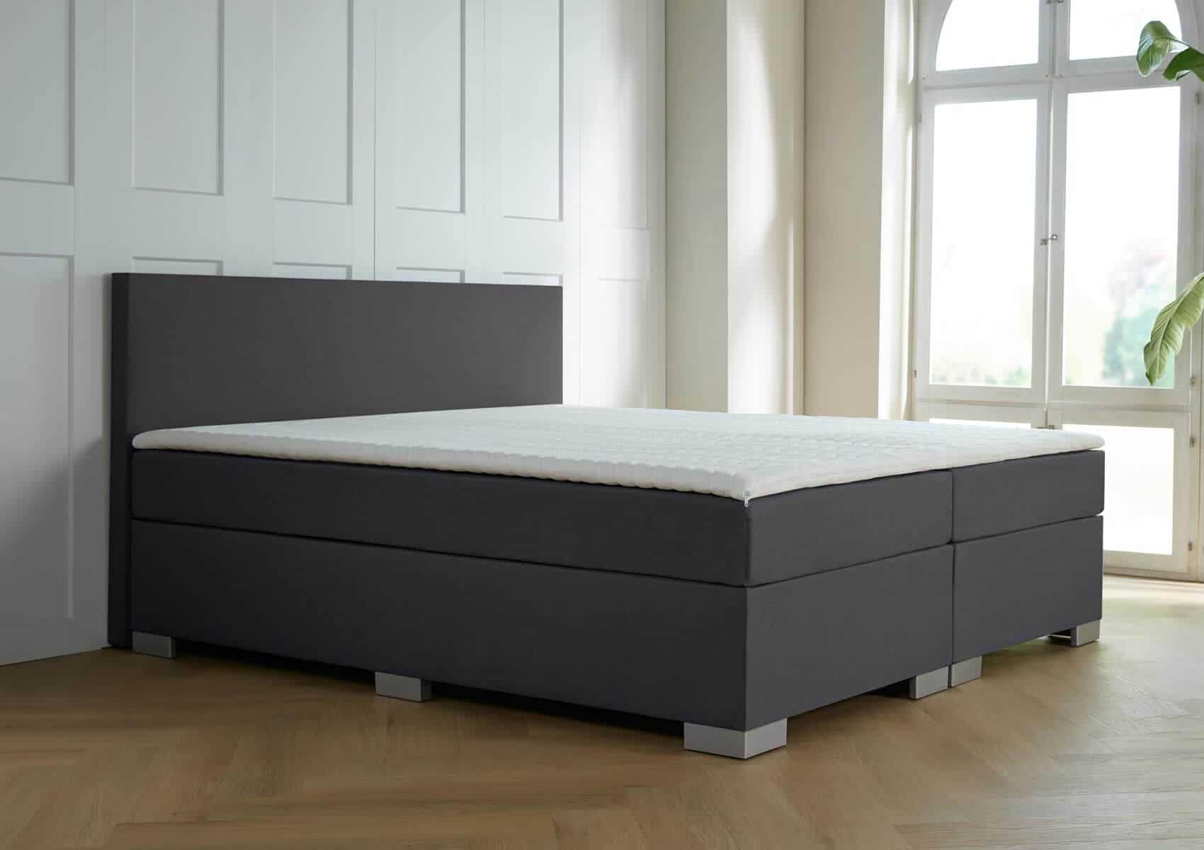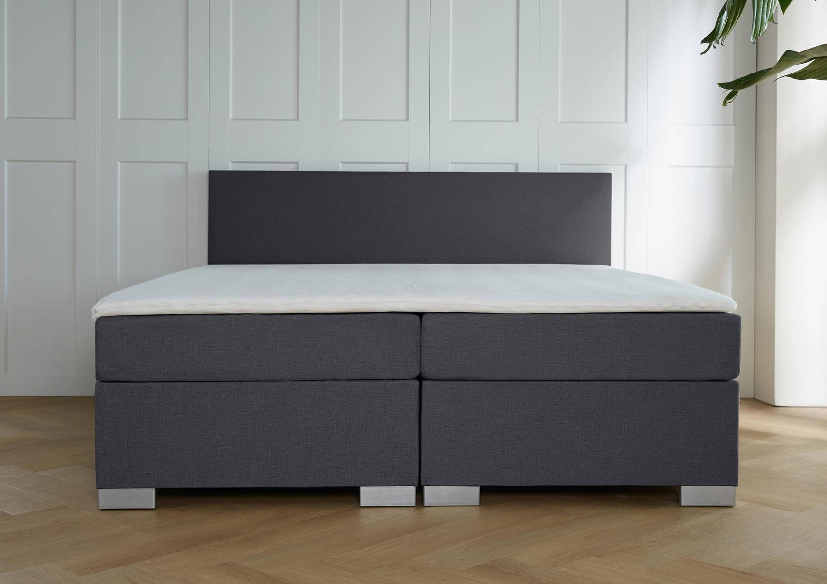 Deze geweldige boxspring Andorra heeft twee extra dikke onderboxen (dikte 30 cm) en dat zorgt voor een stijlvol uiterlijk. Op de boxen liggen de twee heerlijk comfortabele matrassen en daar bovenop ligt weer de topper.