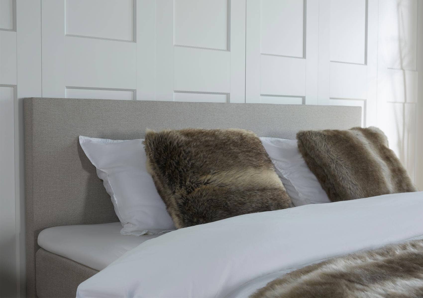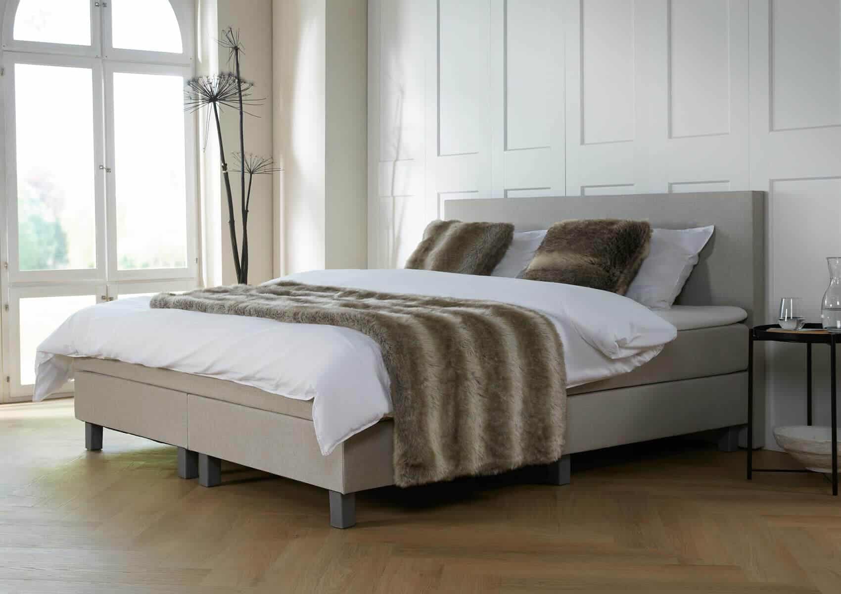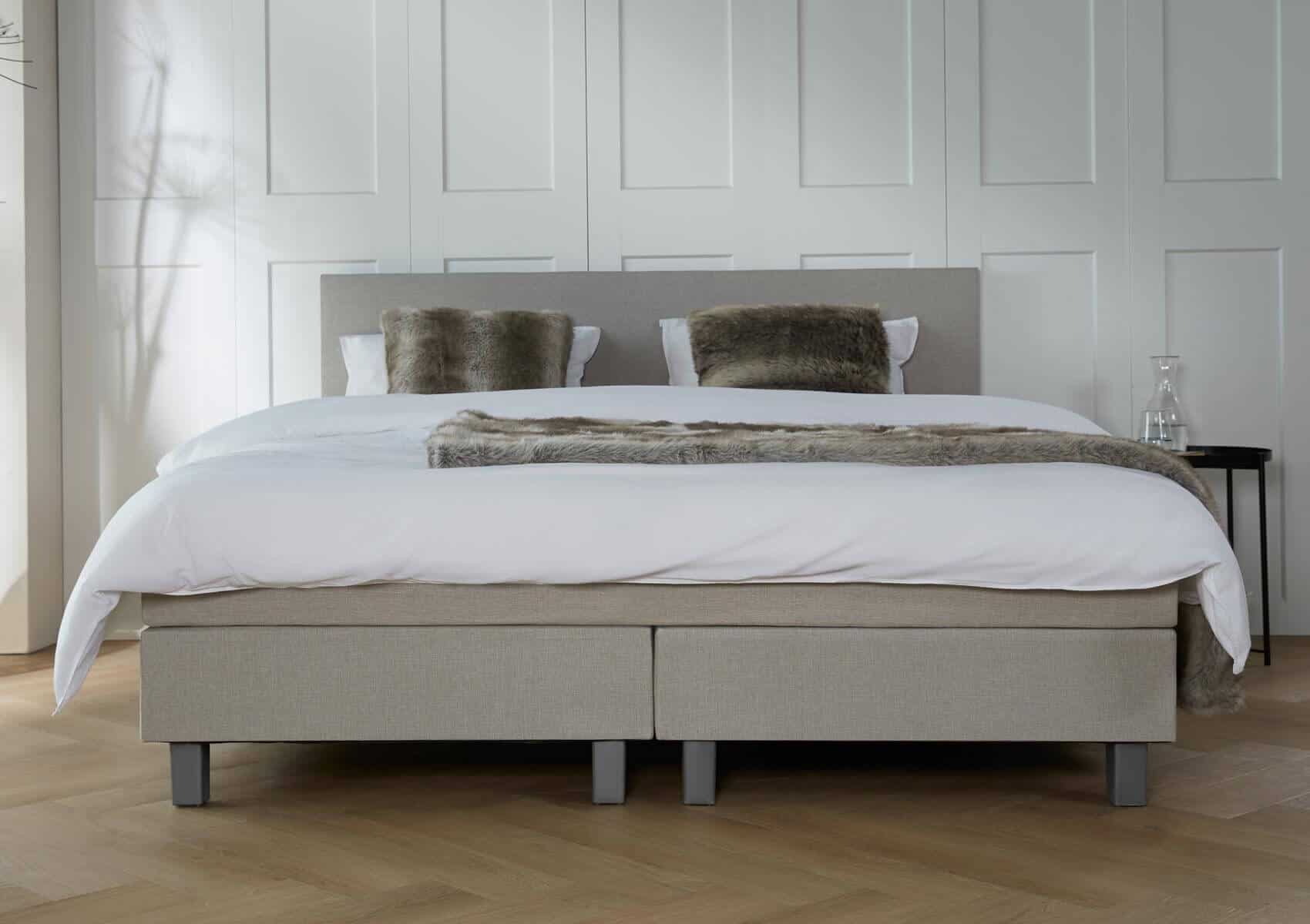 De boxspring Florence heeft een strak hoofdbord dat even breed is als het bed. Het hoofdbord – en het bed – is ‘no nonsense’, zonder veel opsmuk. Hierdoor oogt het bed neutraal en zal het in elke slaapkamer goed staan!