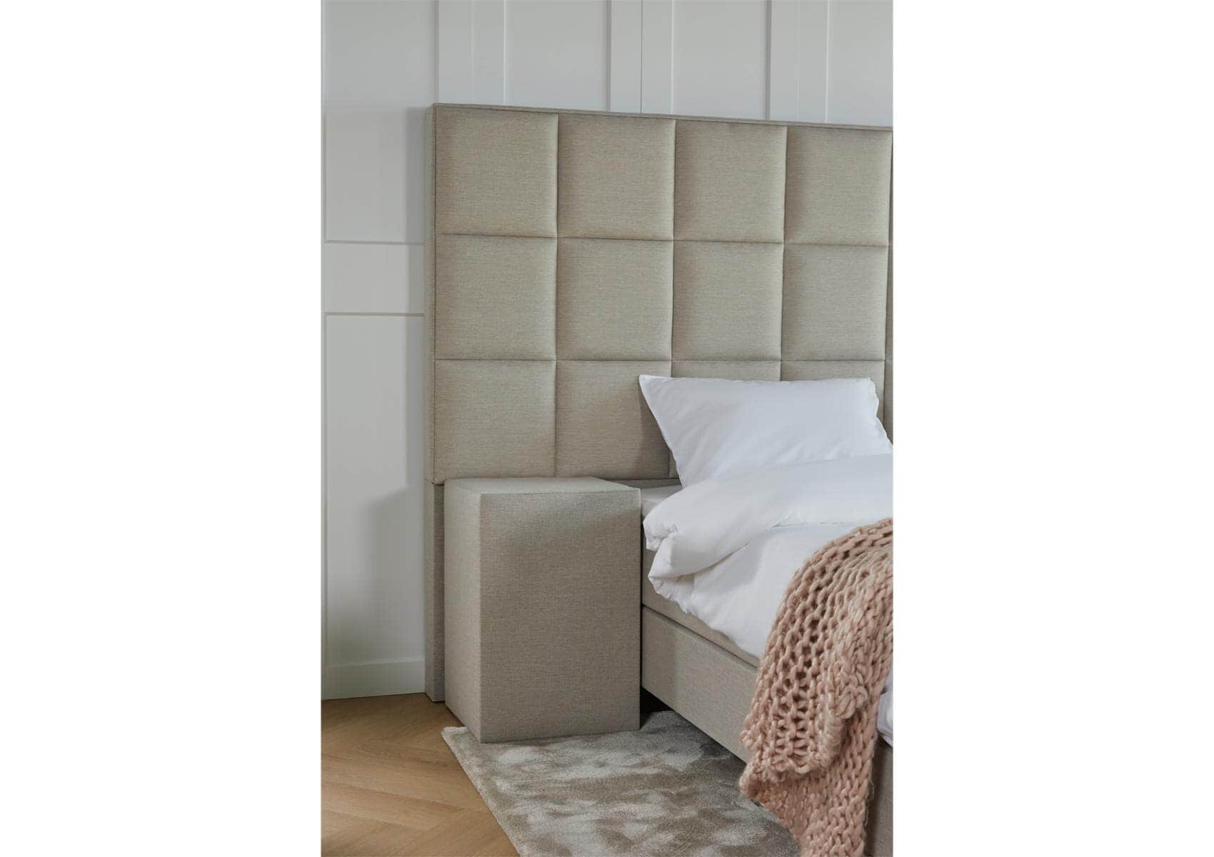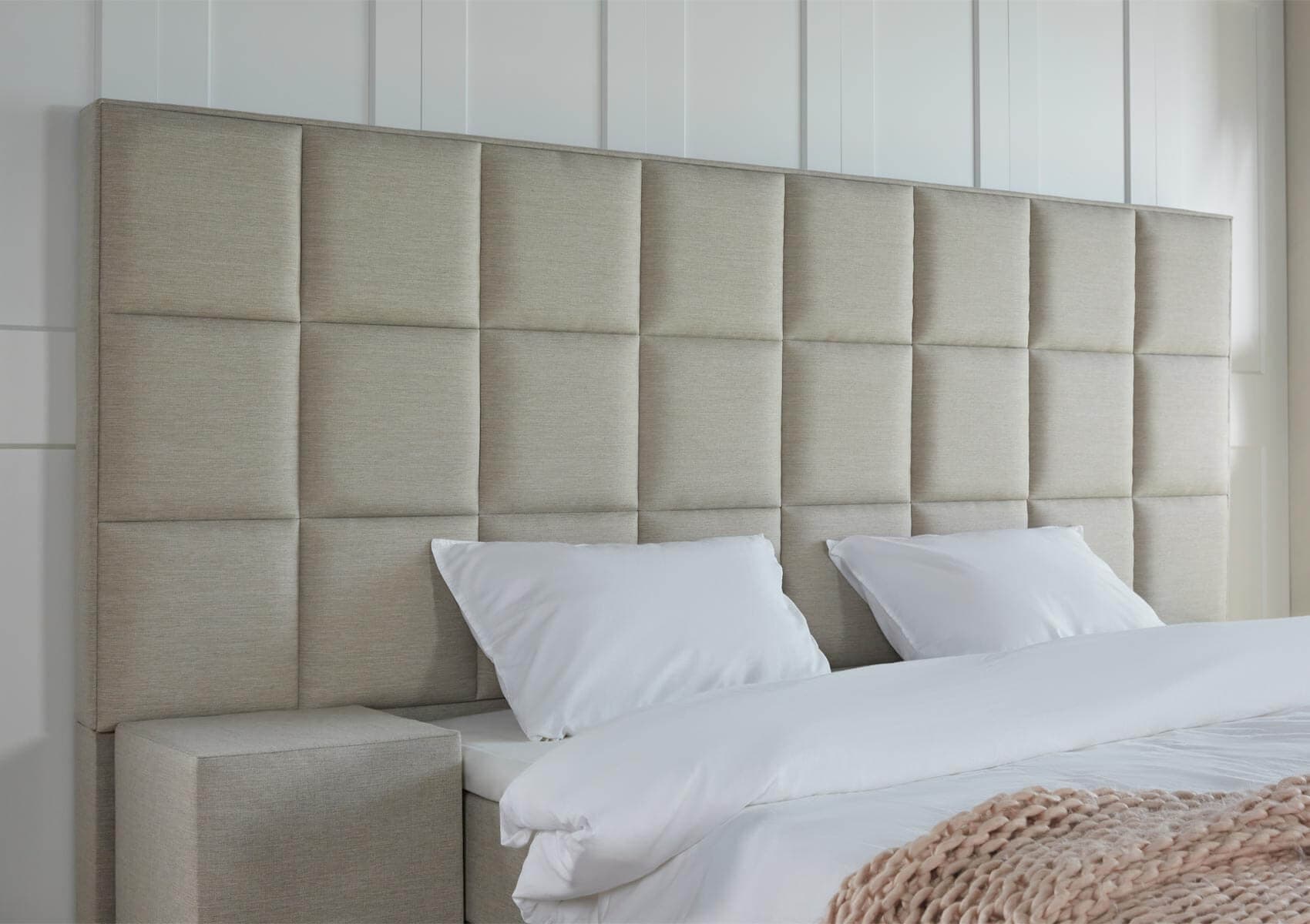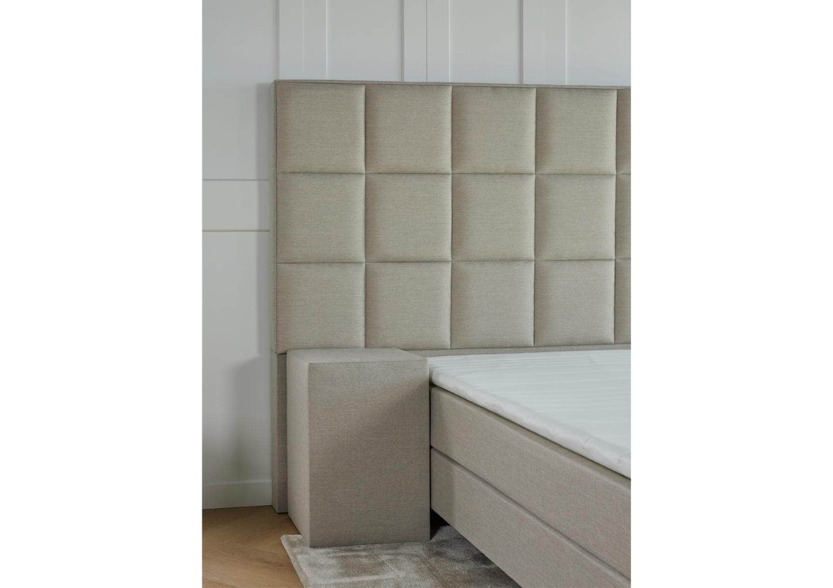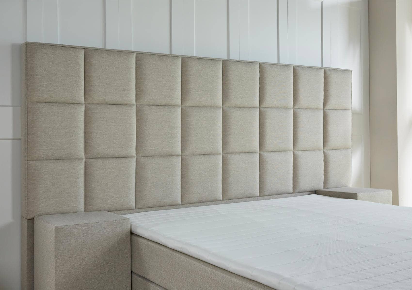 Deze zeer luxe premium boxspring Napoli heeft een XXL hoofdbord dat aan beide kanten 45 cm uitsteekt. Het hoofdbord heeft 24 vlakken en is van hout. In het hoofdbord zit uiteraard schuim, zodat het heerlijk zacht aanvoelt als je er tegen leunt!