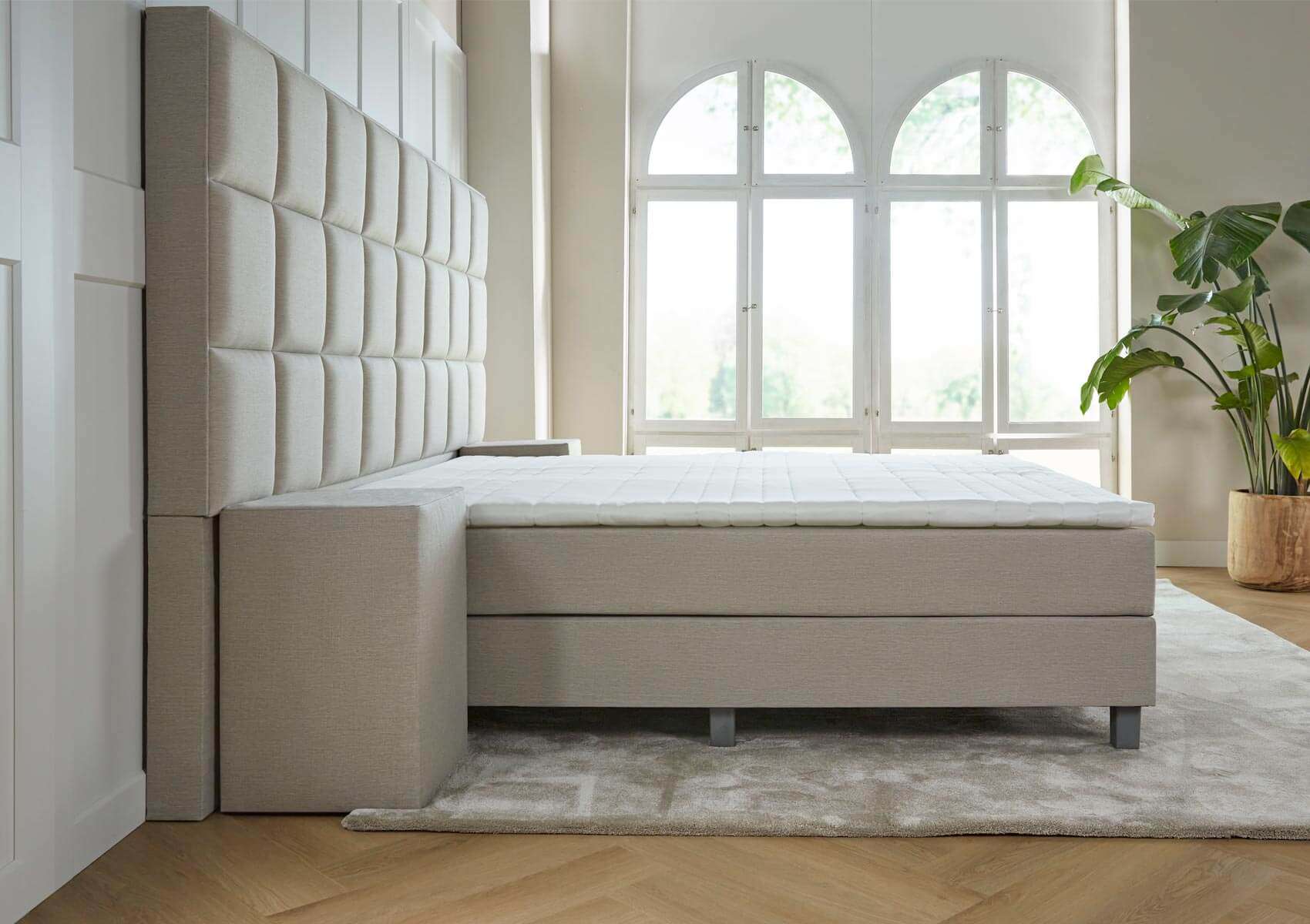 Op de matrassen ligt de topper, ook wel top(dek)matras genoemd. Dit is nog eens een extra matras, voor het optimale comfort. En daarmee is de spleet tussen de matrassen ook meteen afgedekt. Word elke dag uitgerust wakker!