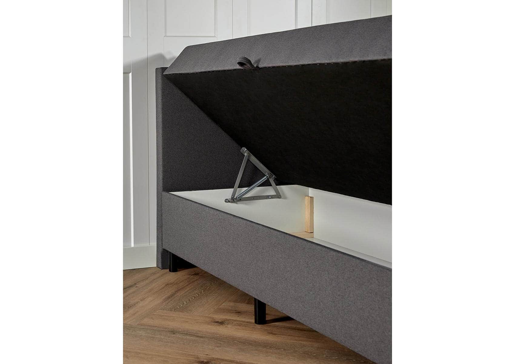 Deze prachtige en scherp geprijsde opberg boxspring Bologna antraciet heeft opbergruimte die zich onder de gehele boxspring bevindt, gedeeld in twee compartimenten. Deze ruimte in de boxspring is ideaal voor het opbergen van beddengoed, dekens en kussens.