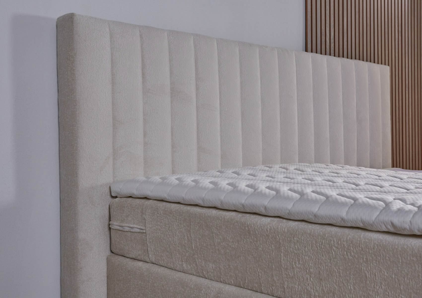 Maak kennis met de 2-persoons opberg boxspring Sicilië in een prachtige beige kleur. Dit unieke bed zorgt voor een elegante en luxe uitstraling van jouw slaapkamer. Je slaapkamer voelt als een hotelkamer. Het bed lijkt subtiel boven de vloer te zweven.